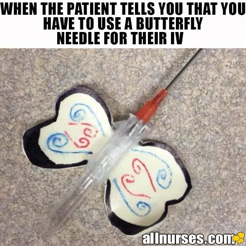 So, I requested that a note be made in my chart, summoning my angel nurse of butterfly needles to do those early 7:30 a.m. honors.